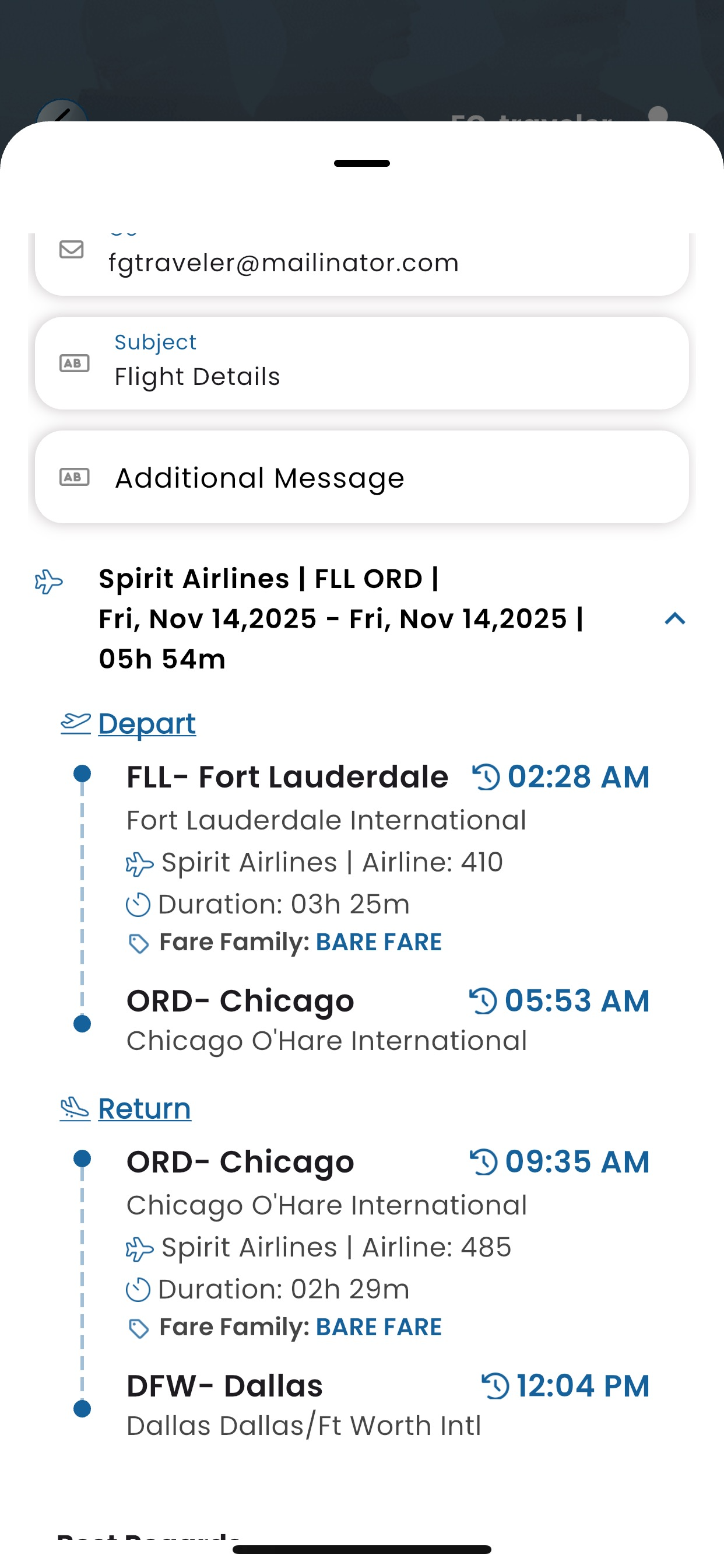 Search FLL-ORD,ORD-DFW, 13 nov.