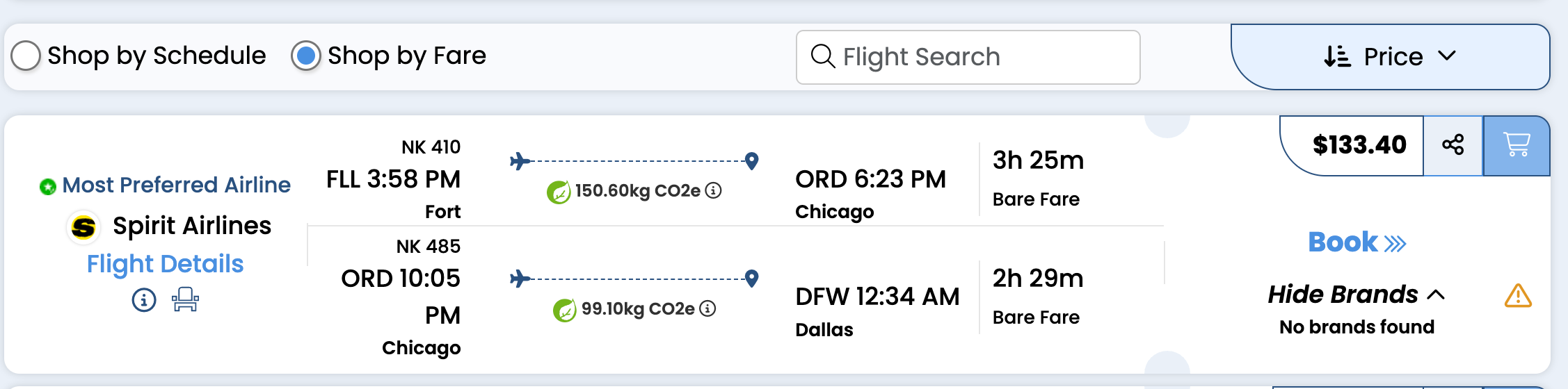 Searched same route and flight