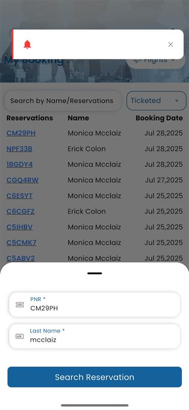 openTask #1795: - nexusKite Mobile App: Unified PNR Search Functionality.- We are not able to Ticketed PNR using search PNR option.