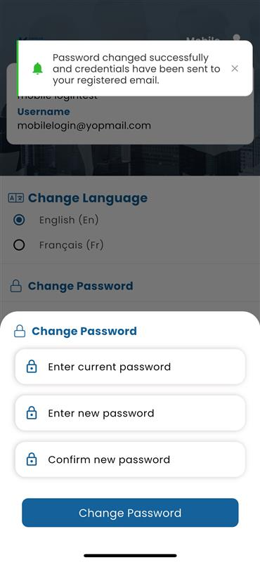 openTask #2139 -nexusKite Mobile App: Username and login management. -We are getting incorrect success message in case we change password.