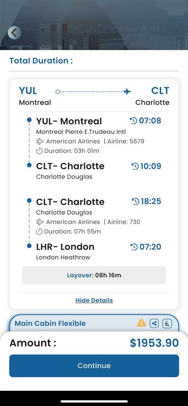 "Total Flight duration" for Flight is missing on Branded fare page.