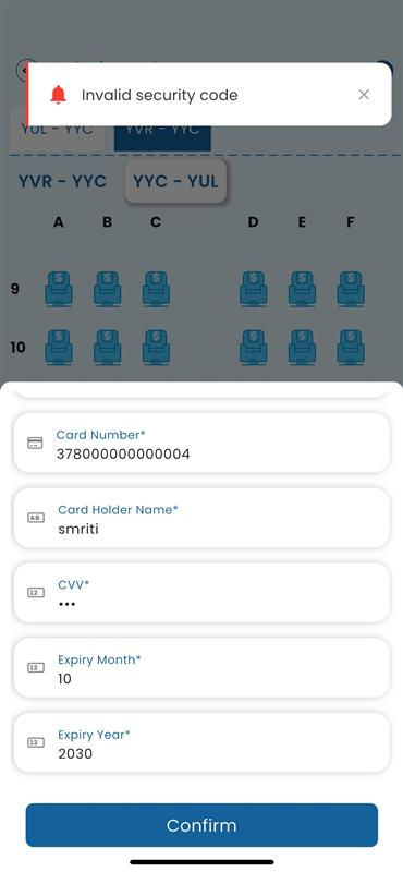 openTask #2169 - nexusKite Mobile App:Middleware Solution.-Sabre- When an incorrect CVV is entered, instead of receiving an "Incorrect CVV" message, we are getting "Invalid security code" error.