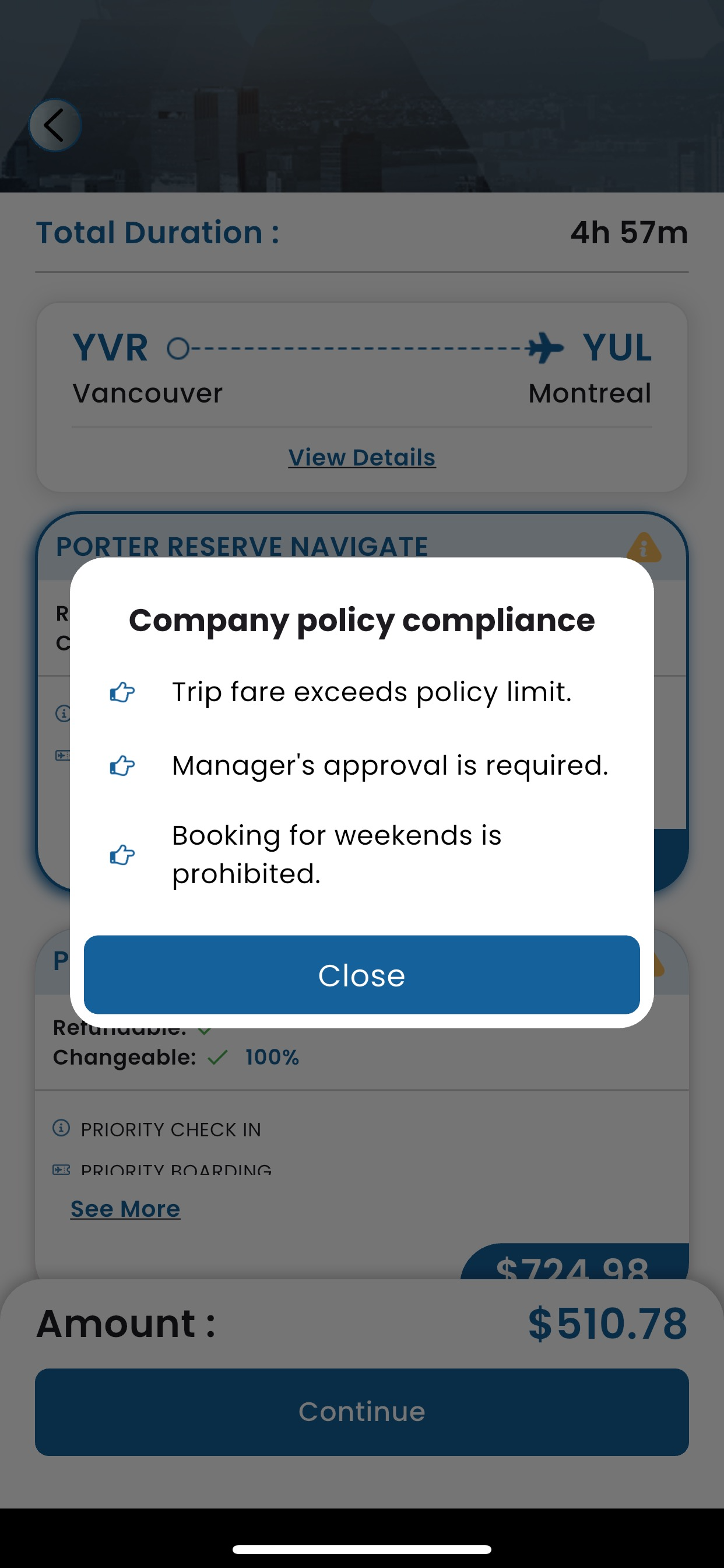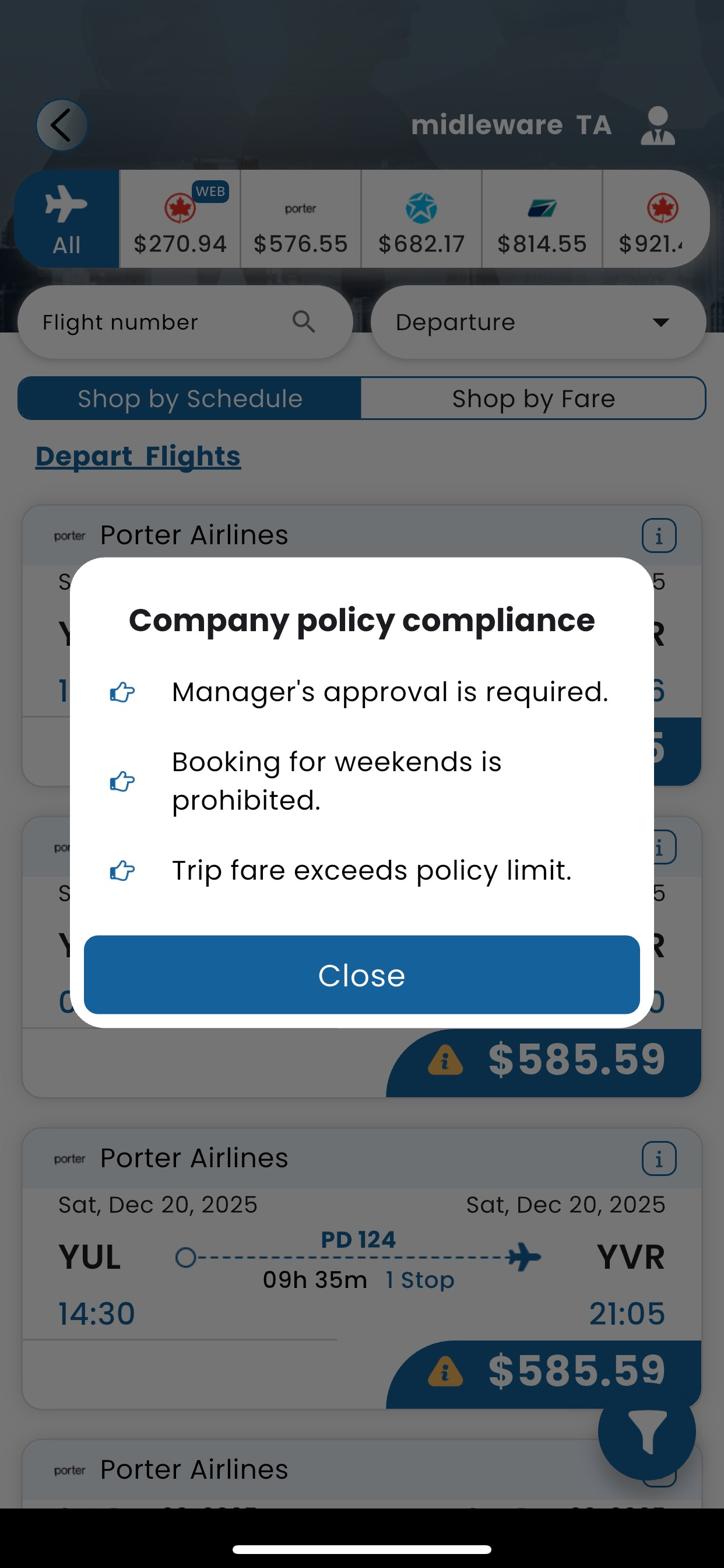 No policy violation is shown for fare or schedule.
