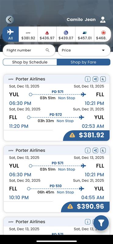 When switching from 'All' to a specific airline on carousel and then back to 'All', the sort filter resets to 'Departure' instead of 'Price' in case of the 'Shop by Fare'.