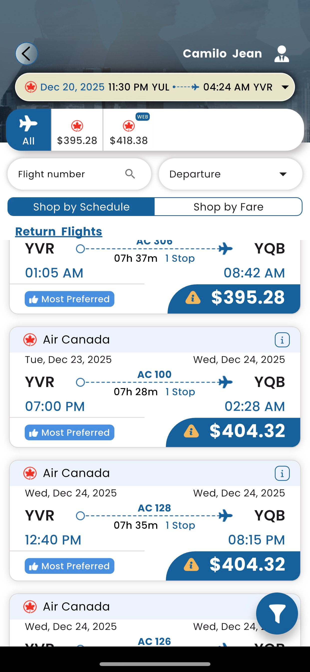 When we apply the Price Range filter for departure in 'Shop by Schedule', the range appears selected for the return flight, but the results do not match the reflected range.