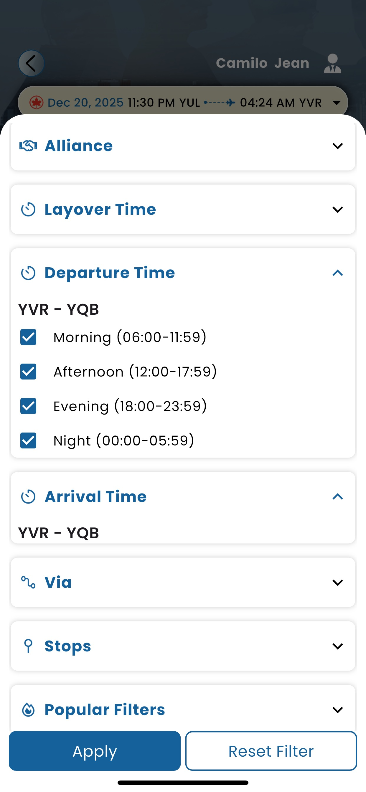 openTask #2169 - nexusKite Mobile App:Middleware Solution.-Travelport - In case of multicity package Departure and Arrival time filters are not working.