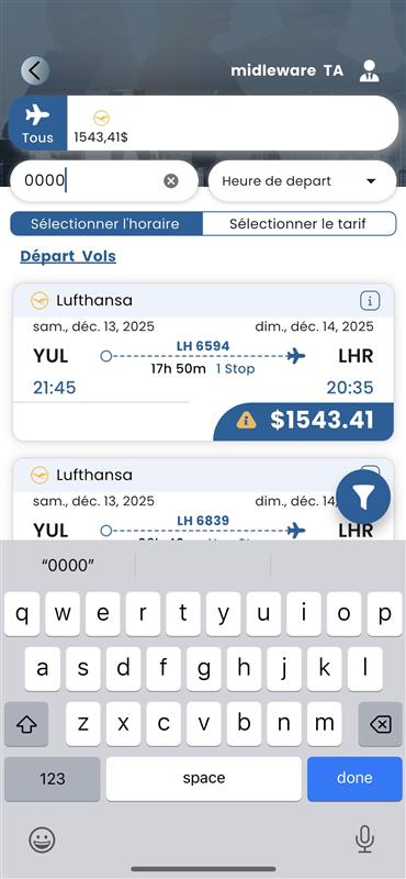 Even though there are no flights with the number 0000 in the itinerary, the system still displays an itinerary.