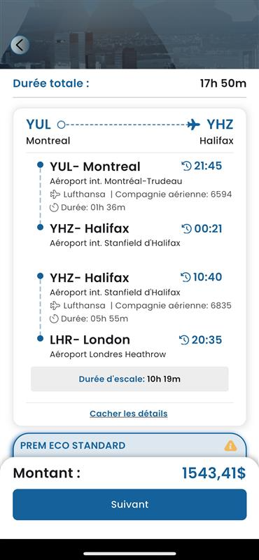 Search for YUL–LHR and apply LH as the preferred airline.