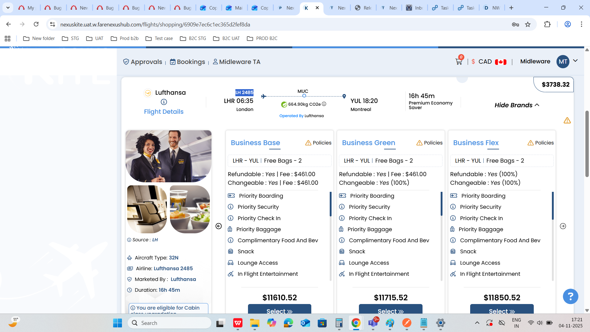 Search for YUL–LHR and apply LH as the preferred airline.